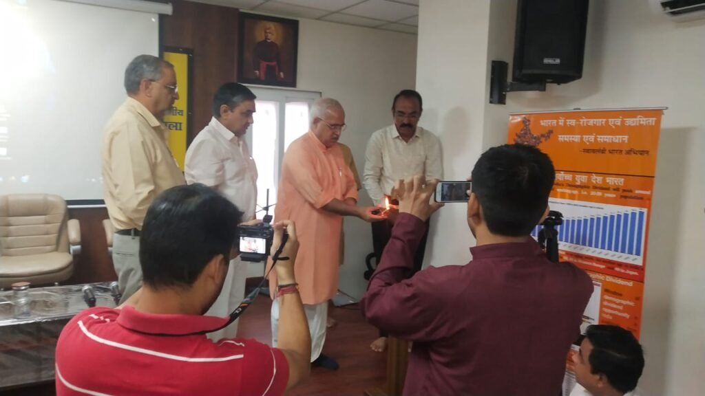 As part of the Swavlambi Bharat Abhiyan, the Akhil Bhartiya Grahak Panchayat organized a special workshop on the themes of employment and self-reliance on 23rd July 2022 at Karol Bagh, New Delhi. The workshop brought together key thinkers and leaders from across the country to discuss practical initiatives and strategies to promote economic empowerment.