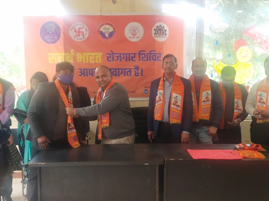 Under the joint initiative of Samarth Bharat, a project of Bhaurao Deoras Seva Nyas, and Seva Bharati, a mega employment camp was organized on at Bhartiyam School, Greater Noida. The event ran from 9:00 AM to 5:00 PM, aiming to connect job seekers with companies offering employment opportunities.